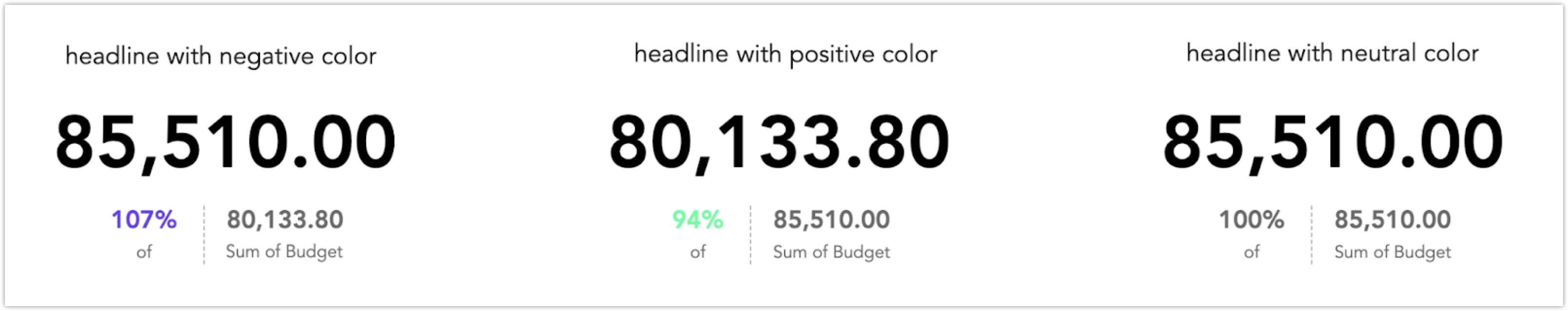 Unlike other visual elements, positive and negative headline comparison colors cannot be selected from the predefined color palette.